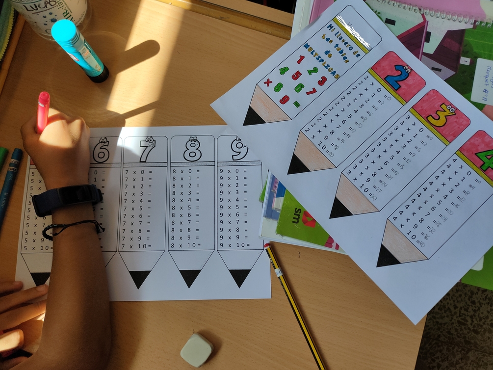 Este llavero de las tablas de multiplicar está pensado para que los alumnos rellenen el resultado de las tablas, colorearlo, recortar y, como sugerencia, que los profes lo plastifiquen para que les dure más.
