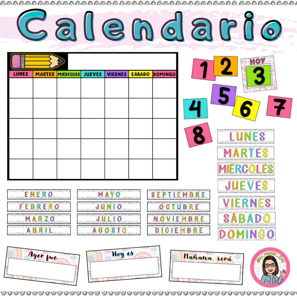 Hoy os traigo otra idea que me rondaba en la cabeza desde hace tiempo y es que yo ya tengo del año pasado un calendario en inglés y español que ponemos en la pizarra pegado (el año pasado con velcro y este año le he cambiado el velcro por imanes porque nos han puesto pizarra vileda imantada ¡yujuu!) ...pero, además quería prepara un calendario grande, este es A3 pero que yo he impreso desde casa con la opción multihoja de la impresora y luego con mucho cuidadín he pegado 😅 (si tienes la opción de imprimir la hoja del calendario directamente en A3 seguro te quedará divino jejeje) Bueno a lo que iba que me enrollo, mi idea es ir moviendo cada mes los números, entre otras cosas para trabajar los meses que tienen 30 o 31 días, para que vean que todos los meses no coinciden los números en los mismos lugares, también practicaremos días de la semana (ayer, hoy y mañana) junto con los meses del año; al mismo tiempo, mi idea es preparar un calendario en blanco y negro con algún dibujo bonito para que lo coloreen e ir marcando cada día el recuadro del día en el que estamos y por último lo buscaremos en la agenda. Mi idea es llevar a cabo esto como rutina por las mañanas a la llegada al cole.