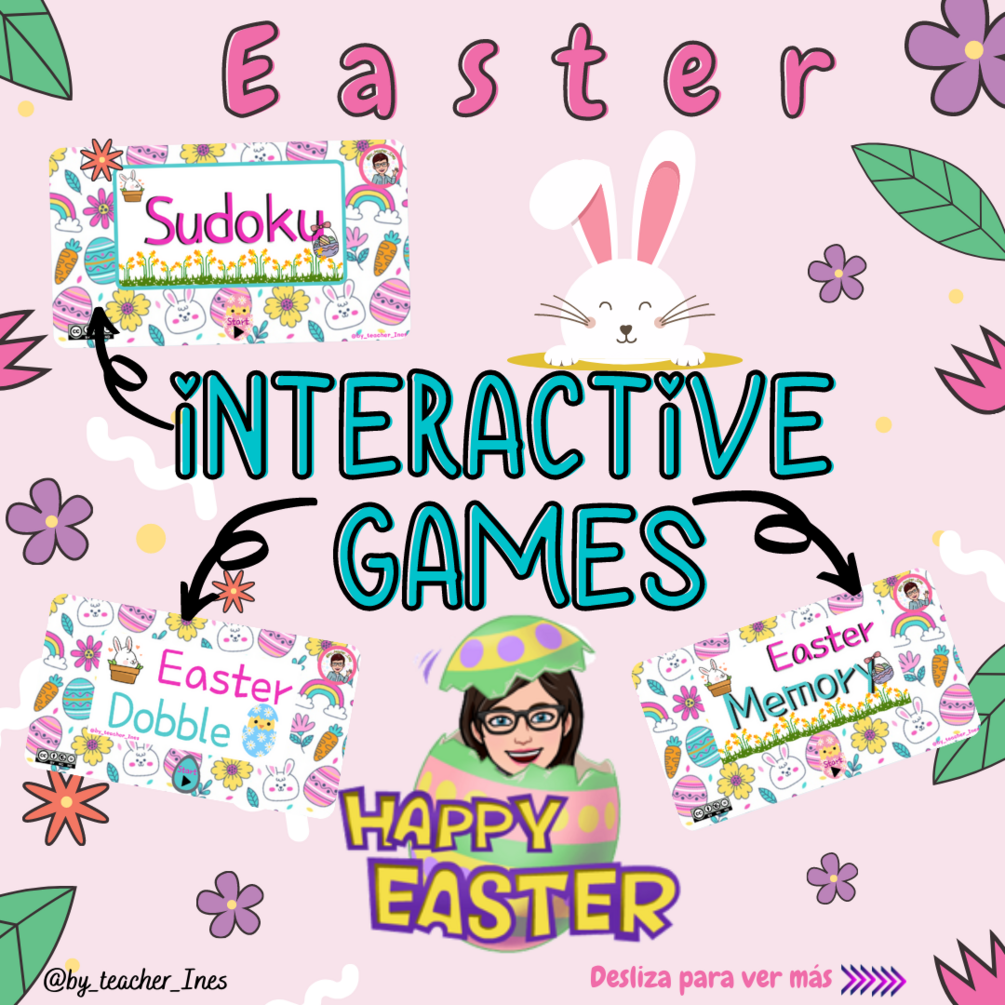 Os presento este pack de juegos interactivos para pizarra digital o tablet; si os gustaron los que compartí para papel en el dossier de Easter esta es otra opción para jugar en grupo con la clase desde la pizarra digital o de manera individual en la tablet.