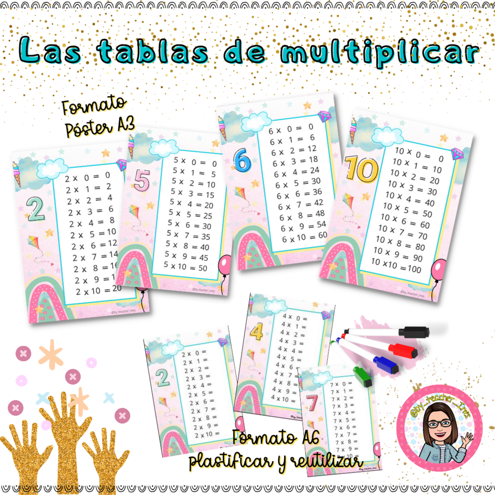 Y unas minitablas en formato A6 pero si los resultados para plastificar y que el alumnado pueda escribir todas las veces que quiera con los rotuladores de pizarra blanca 😃
